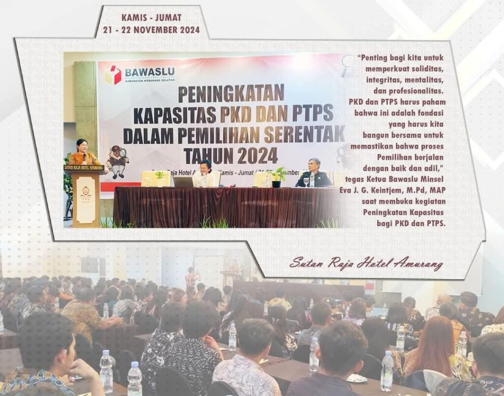 Minsel-Badan Pengawas Pemilu (Bawaslu) Kabupaten Minahasa Selatan (Minsel) menekankan pentingnya penguatan soliditas, integritas, mentalitas, dan profesionalitas dalam menjalankan tugas pengawasan pemilu. Empat pilar ini dinilai menjadi landasan utama bagi Panwaslu Kelurahan/Desa (PKD) dan Pengawas Tempat